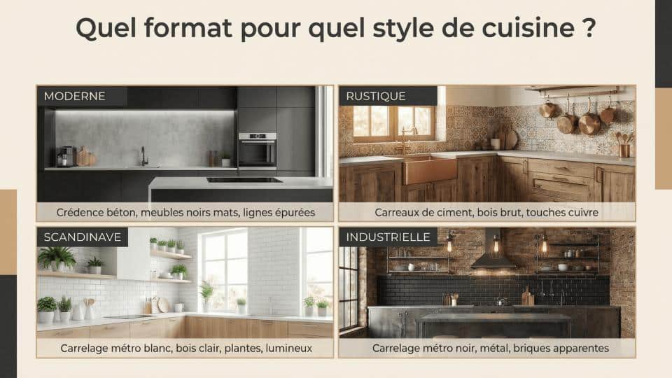 Le grand format est généralement plus cher, tant à l'achat (30-80 €/m²) qu'à la pose (50-80 €/m²). Le petit format est plus accessible (15-60 €/m² pour les carreaux, 40-60 €/m² pour la pose). Attention toutefois aux carreaux artisanaux comme le zellige fait main qui peuvent atteindre des prix élevés, mais la surface limitée d'une crédence permet de se faire plaisir.